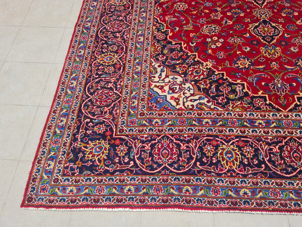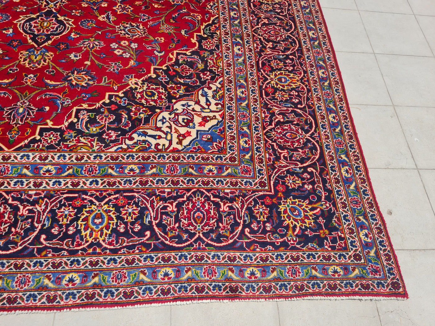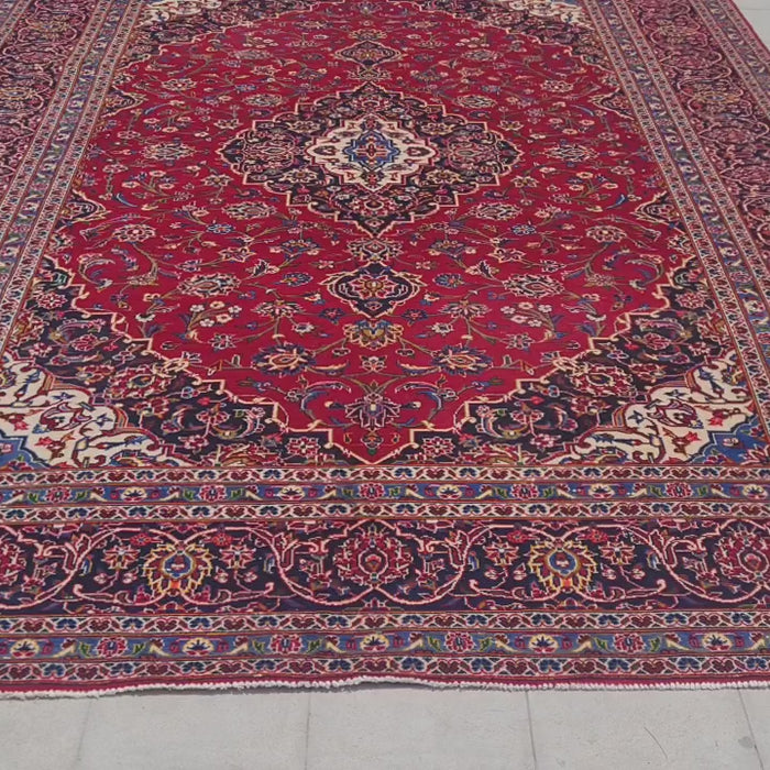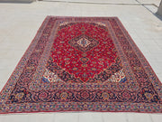 This is a spectacular 12’x 8’ Ft. Authentic Vintage Persian Royal Kashan Circa Hand Knotted Fine Wool Area Rug.