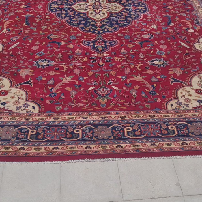 This is a spectacular 11’x 8’ Ft. Ft. Authentic Vintage Indian Qashan Circa Hand Knotted Fine Wool Area Rug.