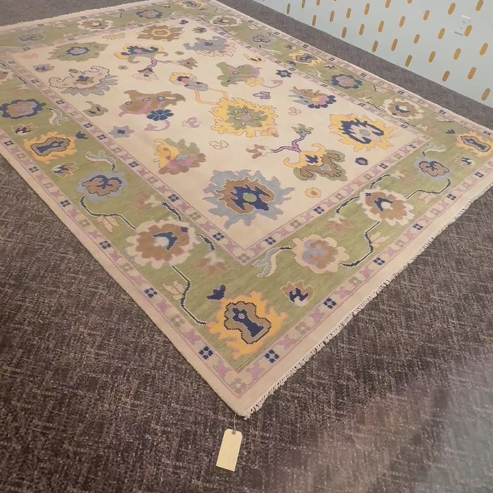 This is a 9’ x 12’ Ft. Turkish Bohemian Oushak Contemporary Hand Knotted Wool Area Rug.