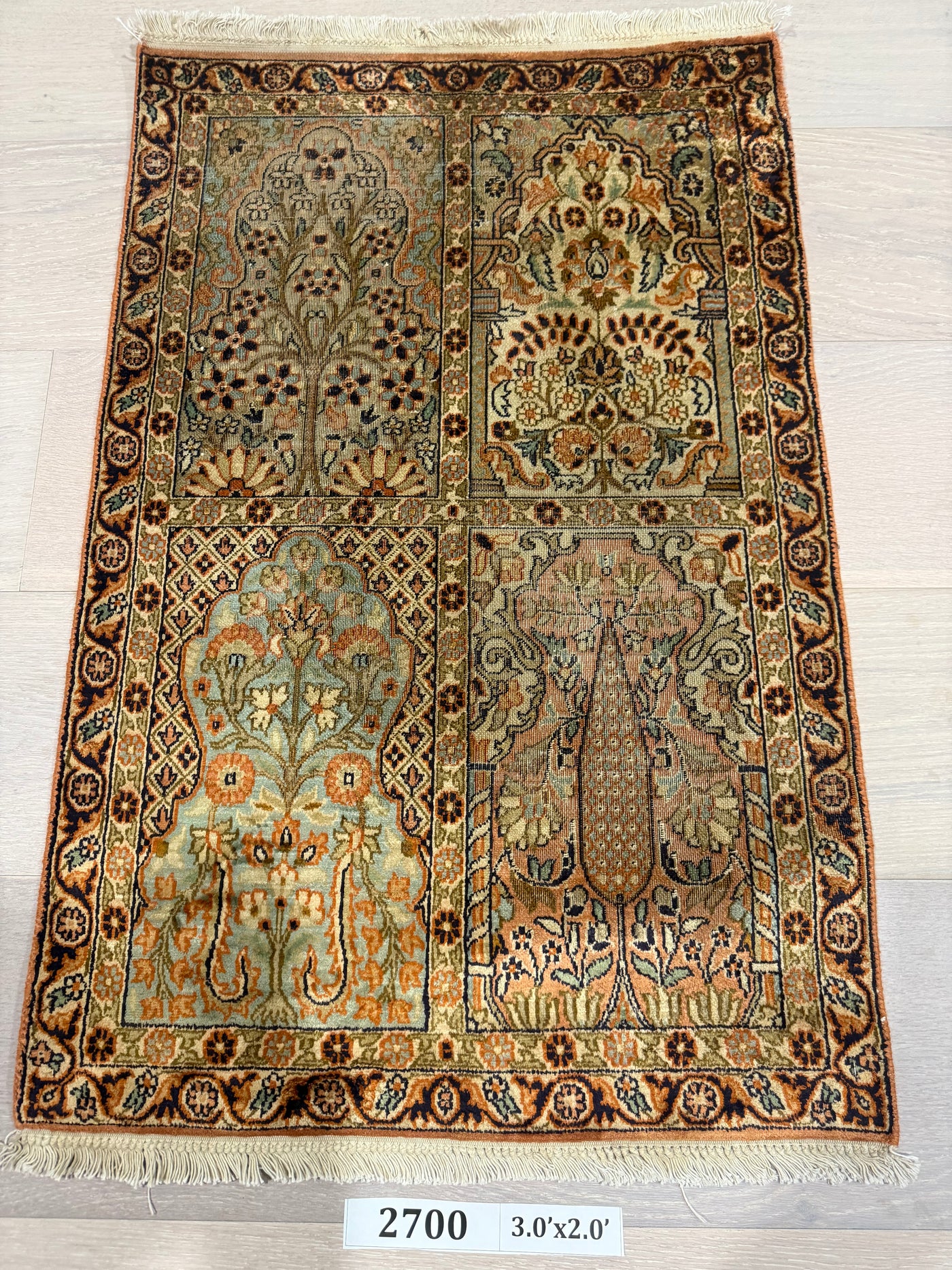 This is a 3'x2' Authentic Hand Knotted Persian Fine Wool Area Rug.
