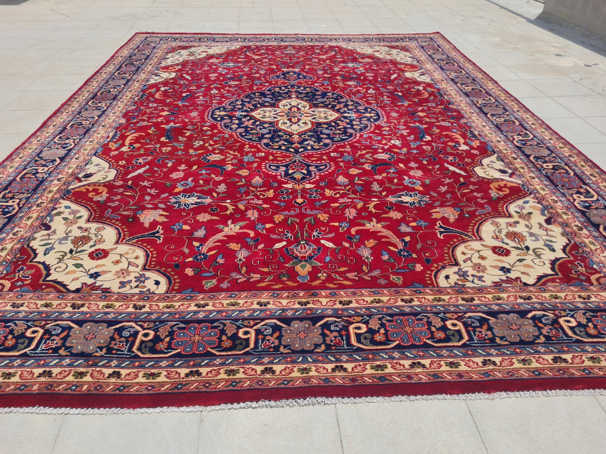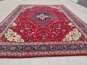 This is an 11' x 8' Authentic Persian Kashan Hand Knotted Finest Wool Large Area Rug. This rug is currently on display in the hanging racks in our retail booth.