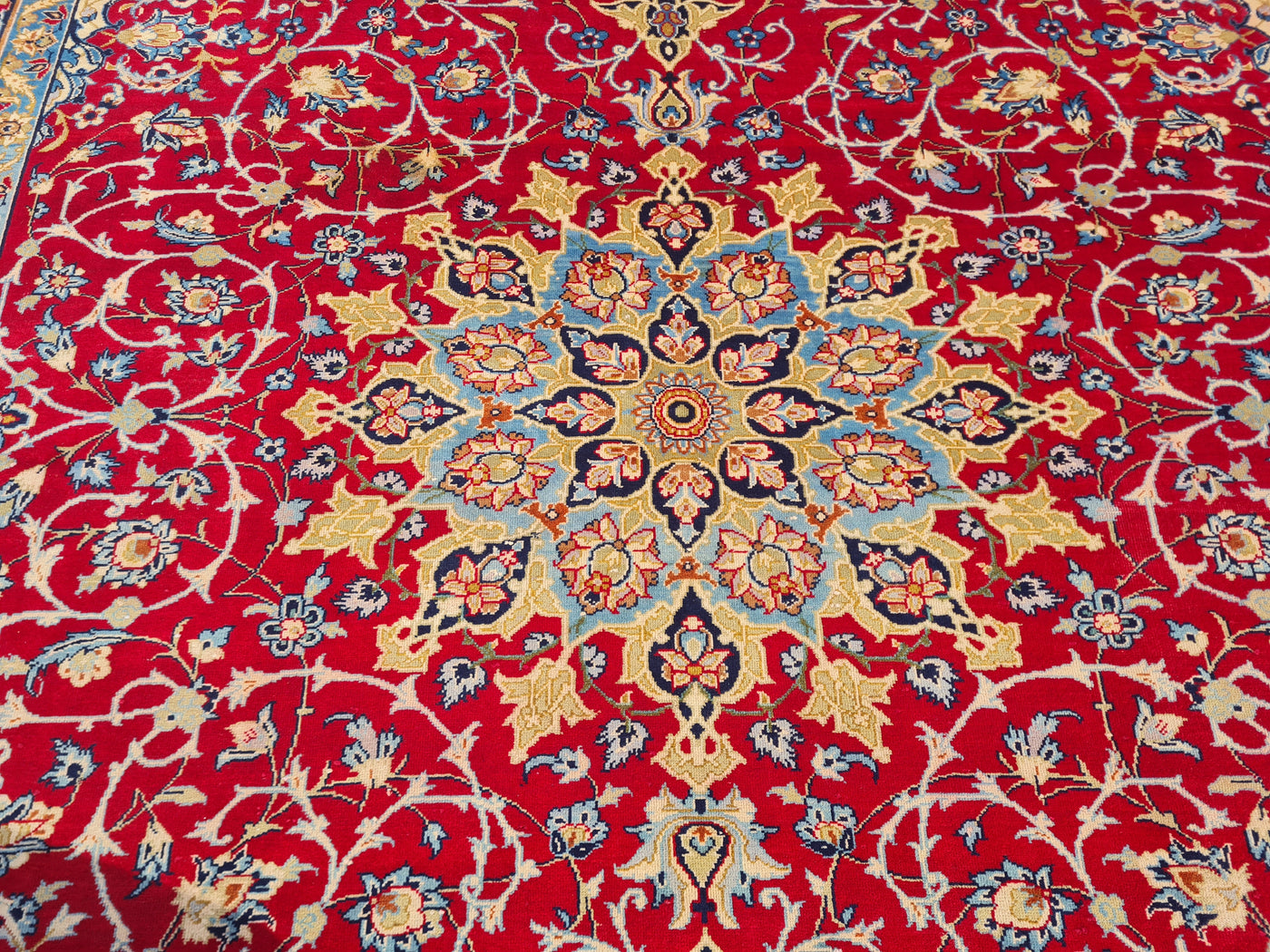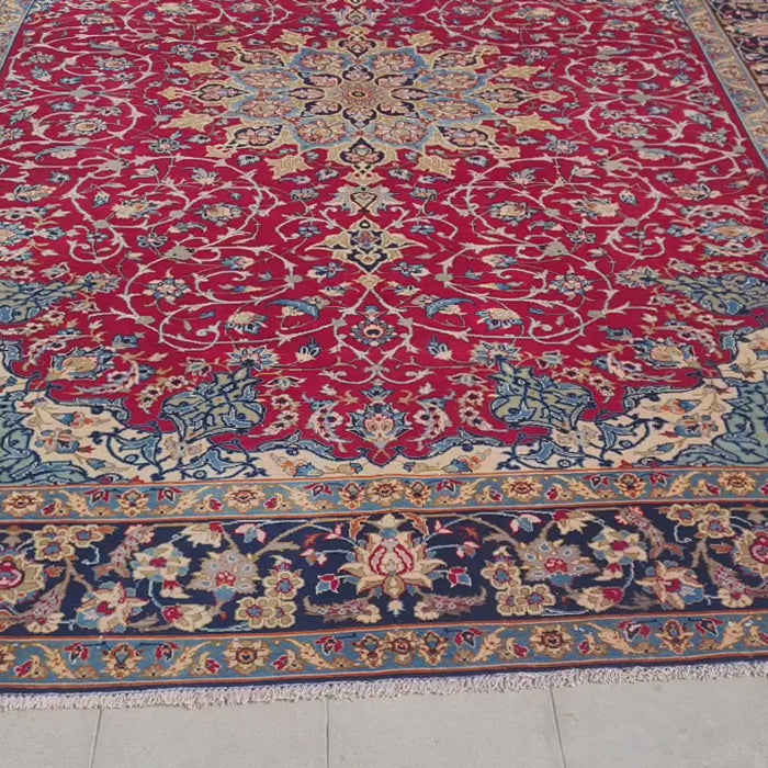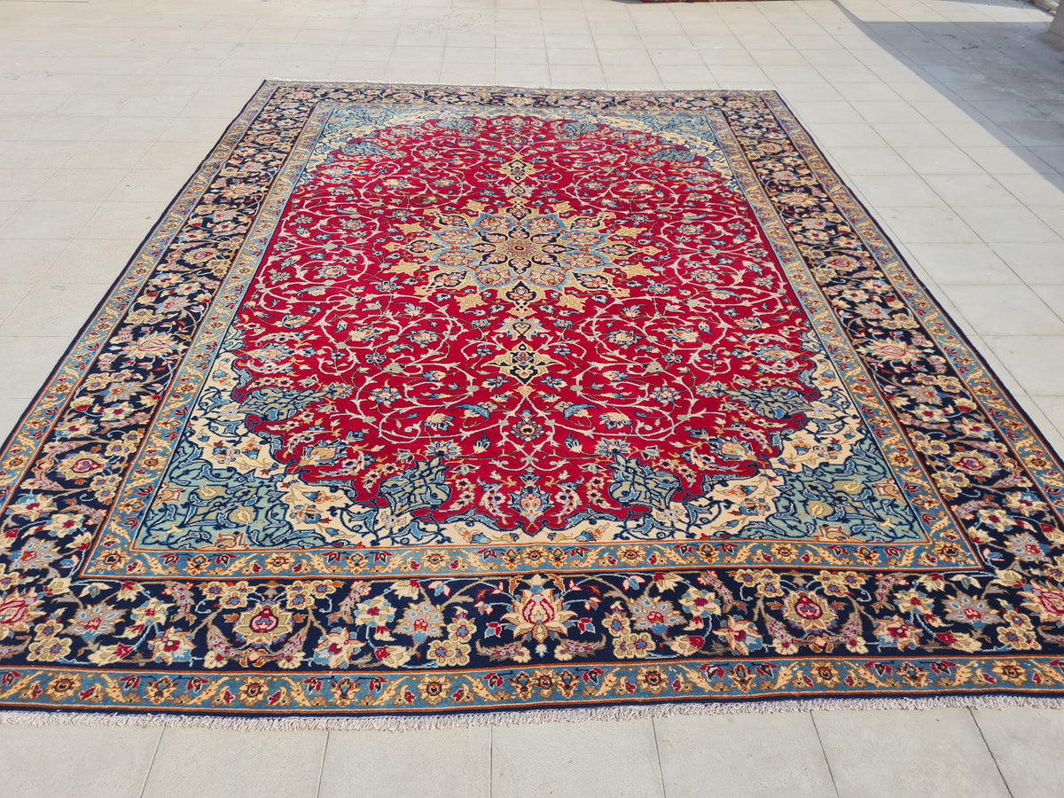 This is a spectacular 12' x 9' Authentic Vintage Persian Najafabad Isfahan Hand Knotted Fine Wool Area Rug.