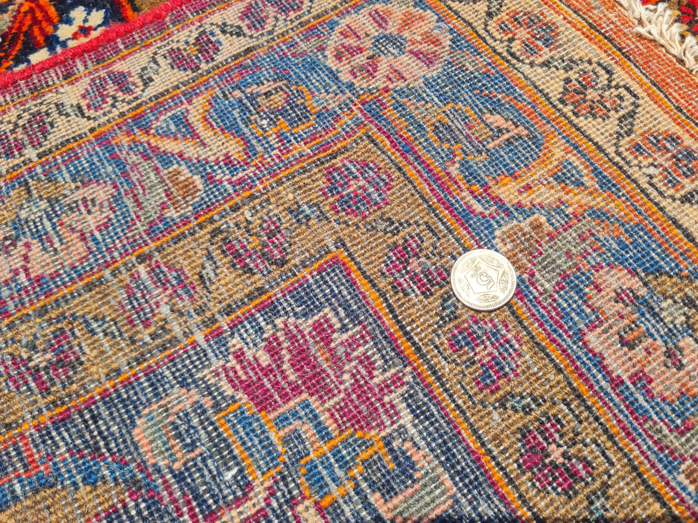 Condition: Incredible Antique Rug in Excellent Condition. Hand Knotted. Magnificent Bright VEGETABLE DYED Colors, Fine quality and Incredible design, Wool Pile with super high knot count per square inch. No repairs and shows no wear.