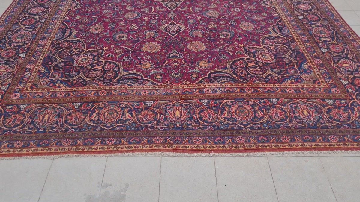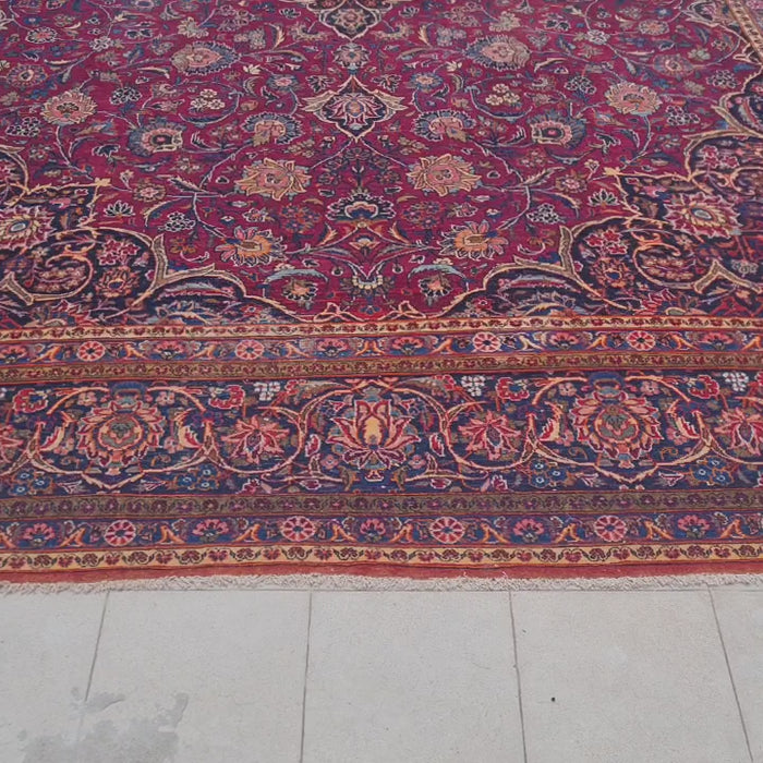16 x 11 Ft. Authentic Vintage Persian Kurk Kashan Hand Knotted Fine Wool Area Rug.