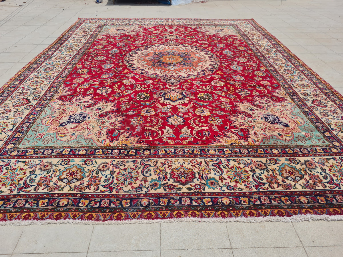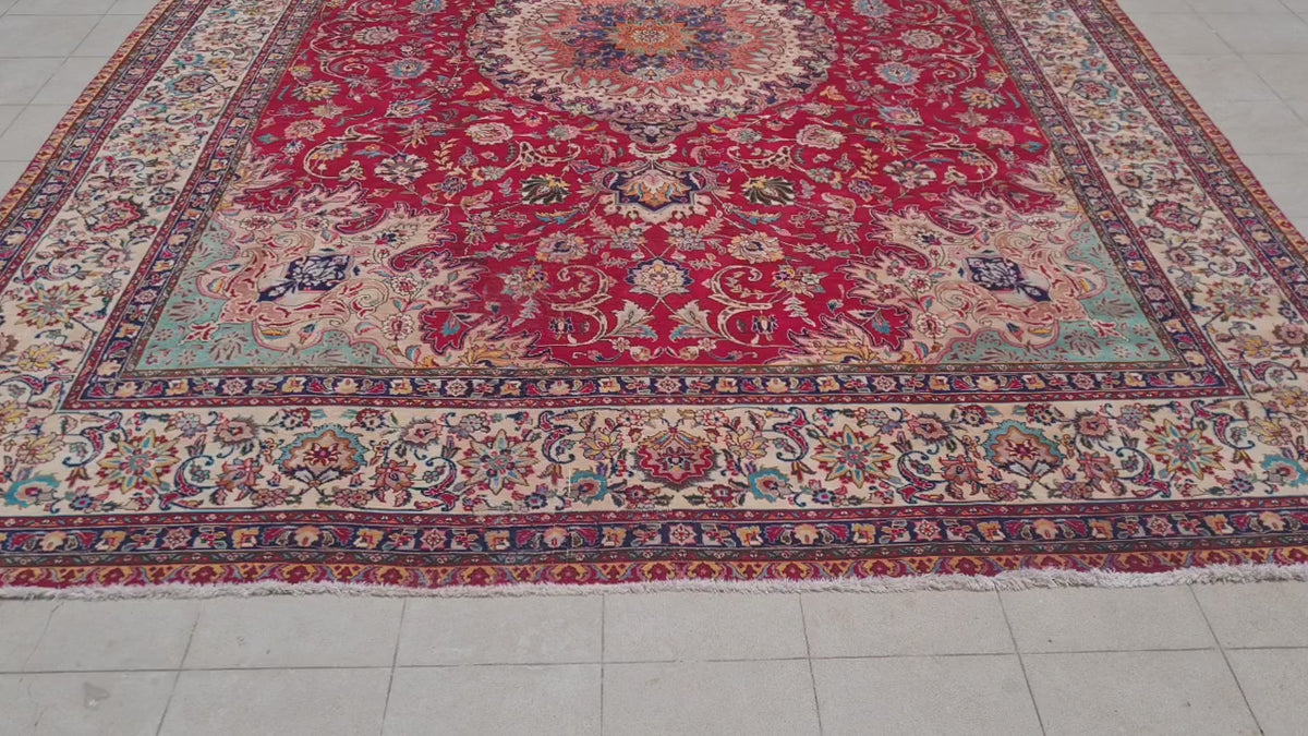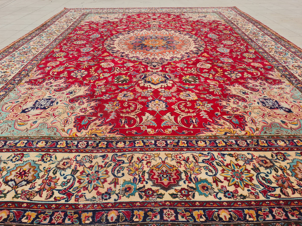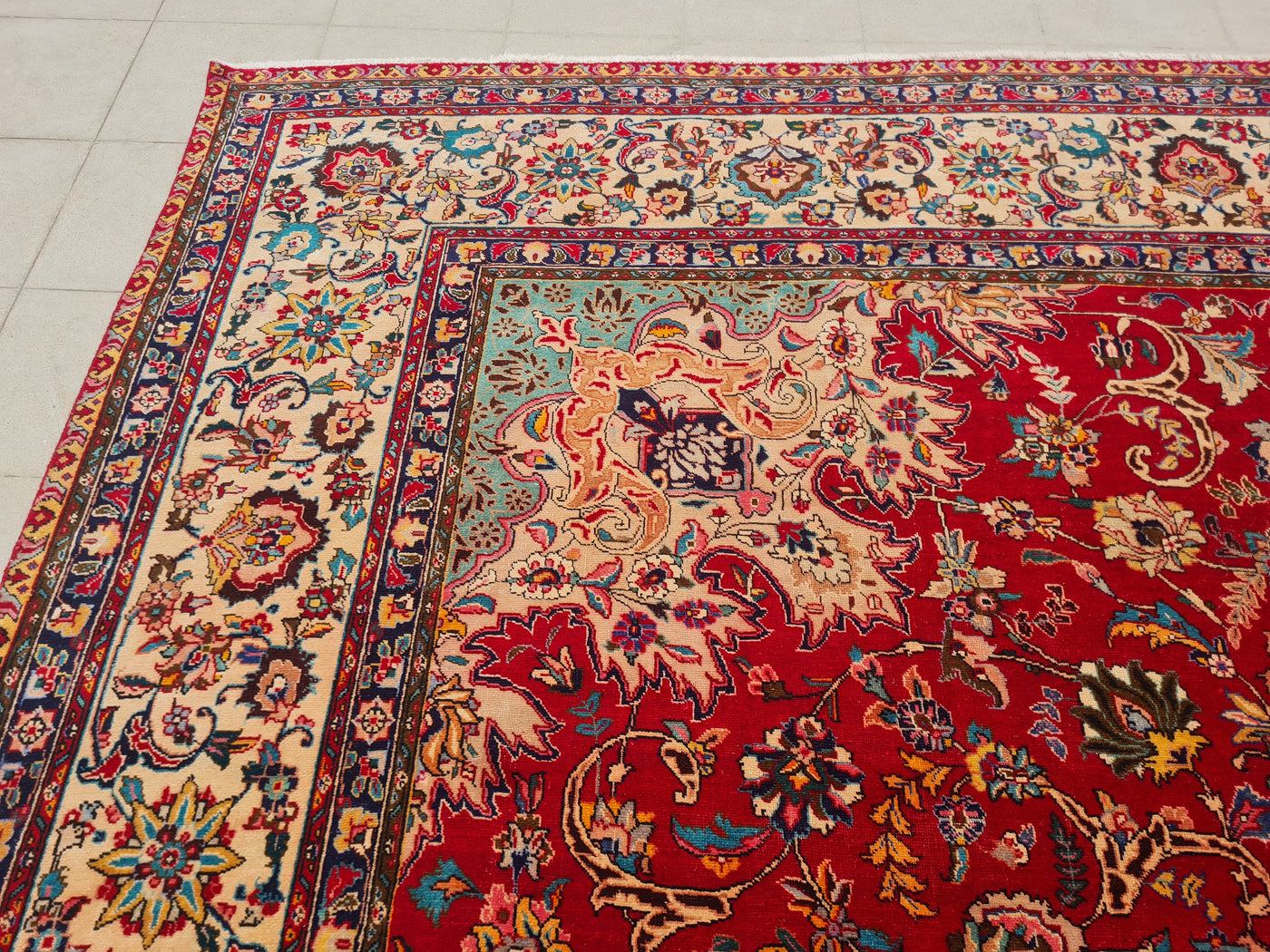 This is a spectacular 13' x 10' Authentic Vintage Persian Najafabad Isfahan Hand Knotted Fine Wool Area Rug.