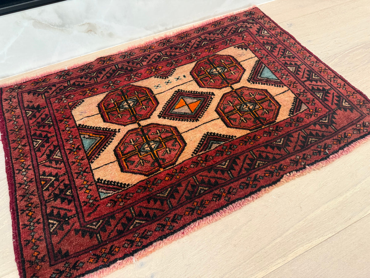 This is a 3' x 2' Foot Authentic Vintage Persian Turkmen Sara Hand Knotted Wool Small Area Rug.